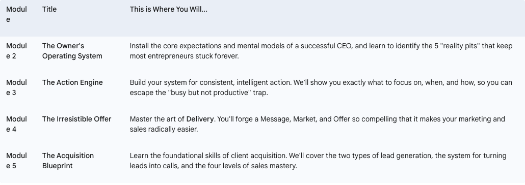 We are about to cover a lot of ground, and we’re going to move quickly. But the path is clear. Each module builds directly on the last, creating a powerful momentum that will carry you through Level 1 and set the stage for explosive growth beyond.