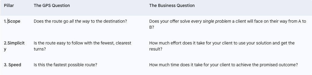 Scope Score (1-5): How completely does my solution solve every problem between my client’s Point A and Point B?